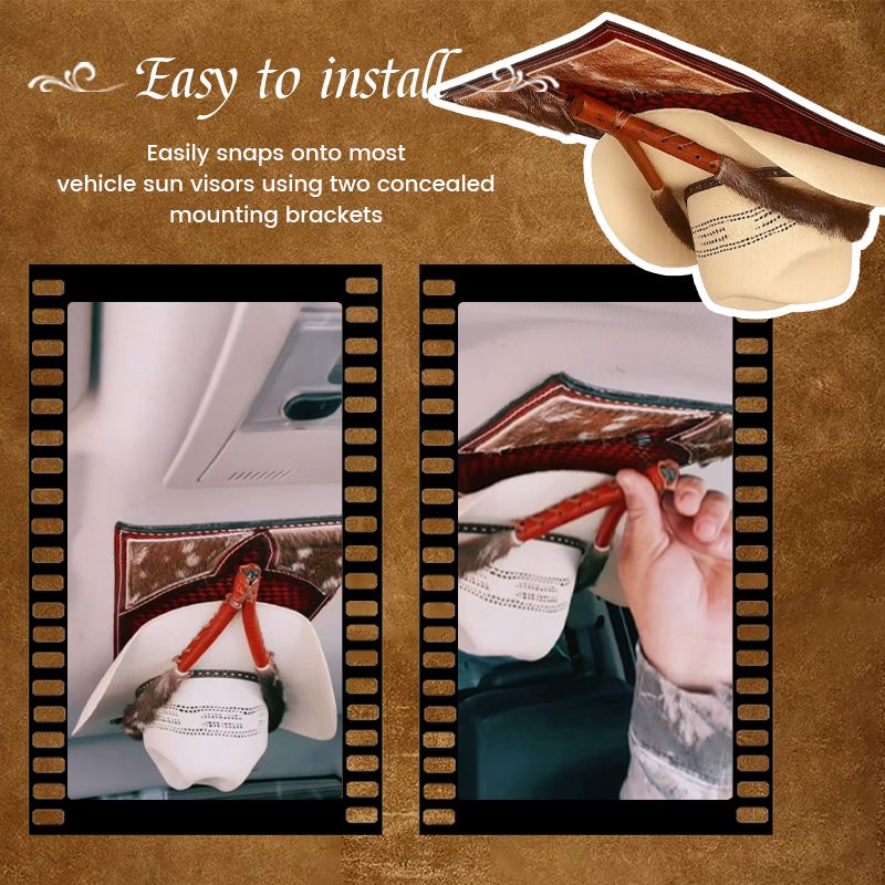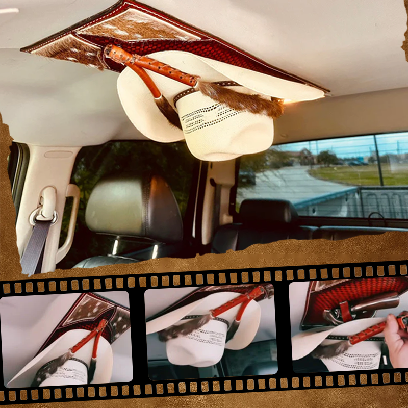 🐮🤠 Western Leather Visor Organizer — Rustic Car Hat & Accessory Holder